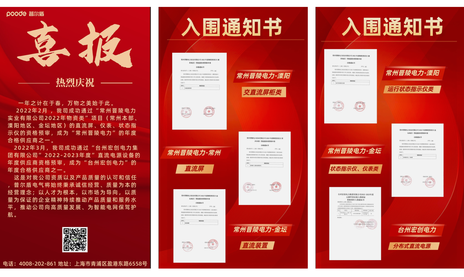 普尔盾电气入围常州晋陵电力、台州宏创电力2022-2023年度供应商