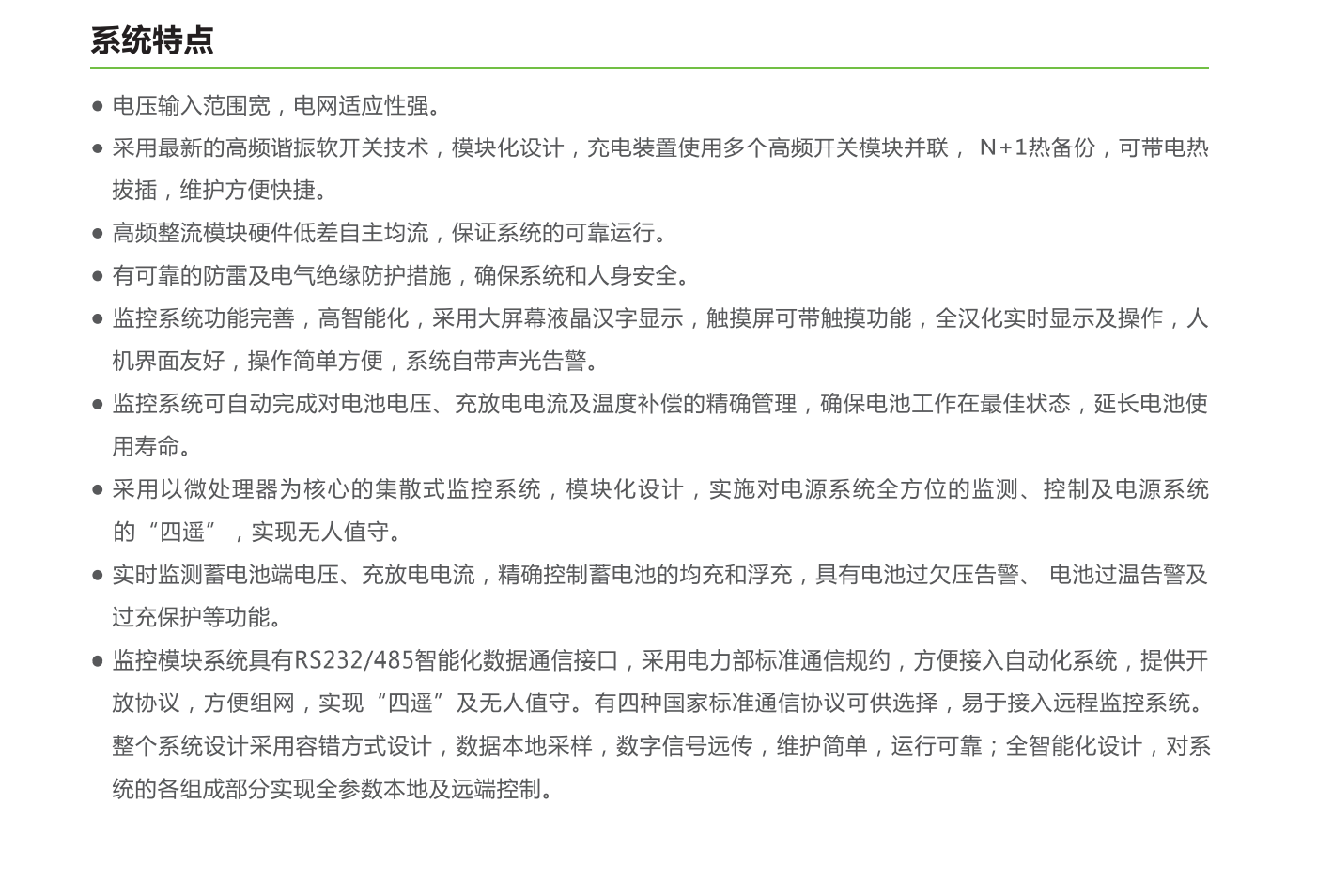 本产品广泛应用于从10KV到500KV不同电压等级的发电厂、水电站及各类变电站、开闭所、开关站和用户变中,为断路器分合闸及二次回路中的仪器仪表、继电保护和事故照明提供直流电源、特别适合无人值守需要。